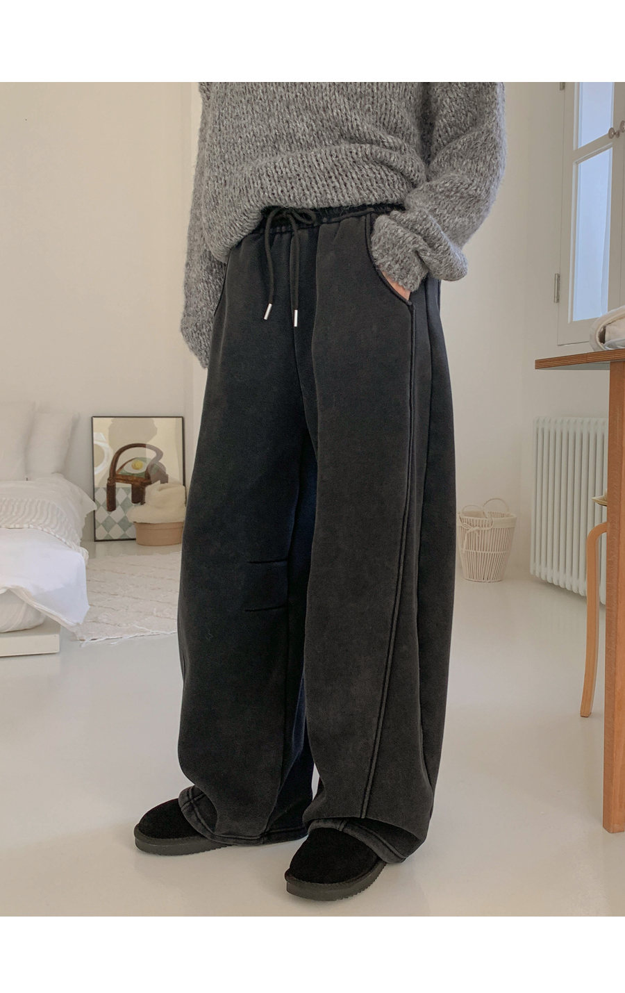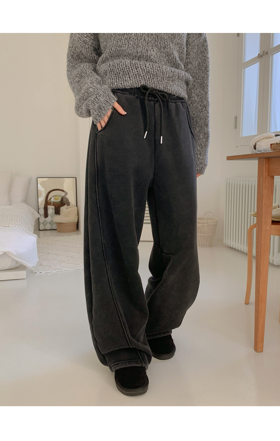 优雅的猪蹄褶裥宽版训练裤