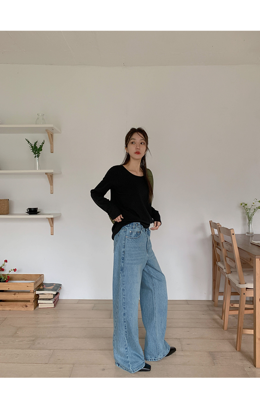 【特价15%折扣】猫沙色水洗Bijo纽扣阔腿喇叭裤