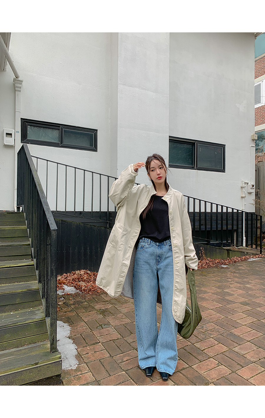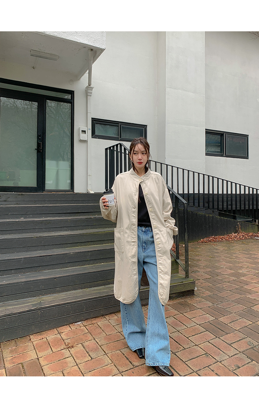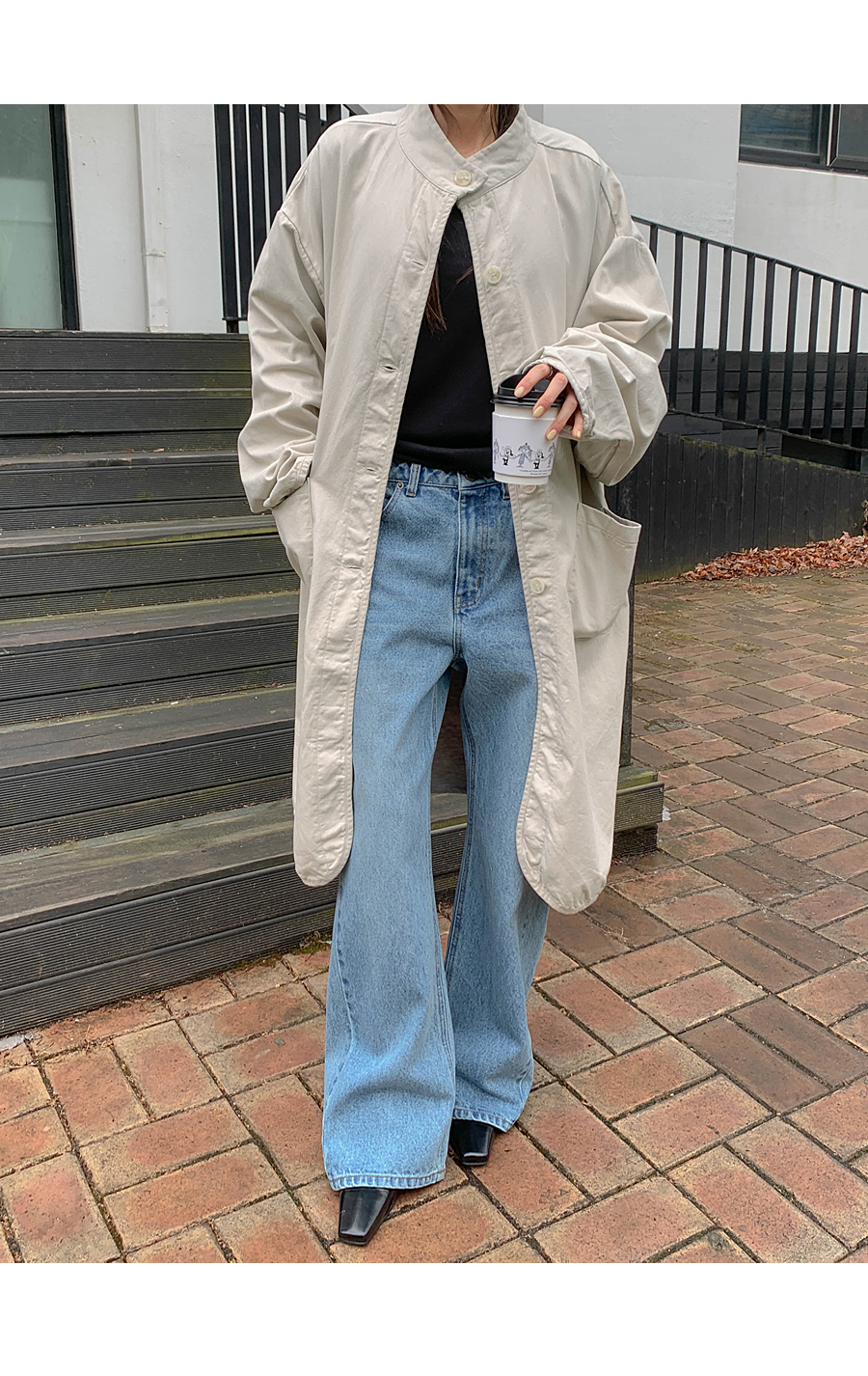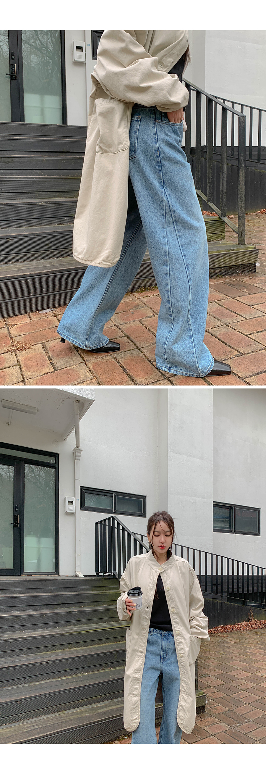 【特价15%折扣】猫沙色水洗Bijo纽扣阔腿喇叭裤